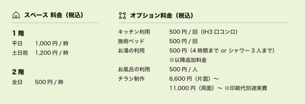 分かりやすい時間貸し料金です。定期利用をご希望の方はお得なプランもございますので、お気軽にご相談ください。